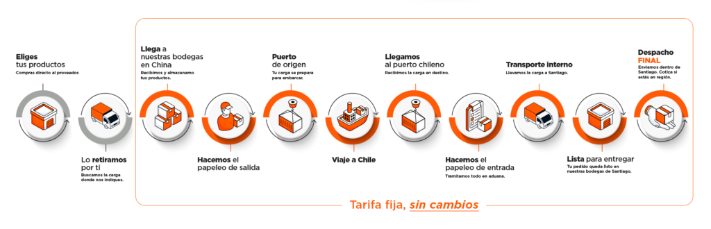 Consolida tu carga desde varios proveedores en China y recíbela directamente en Santiago con tarifa todo incluido.